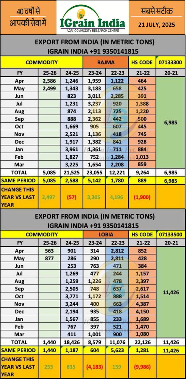 RAJMA LOBIA EXPORT DATA