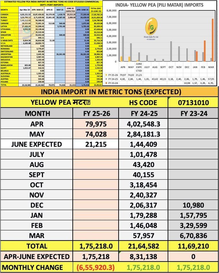 India – Yellow Pea Import Estimates (FY 2025–26)
