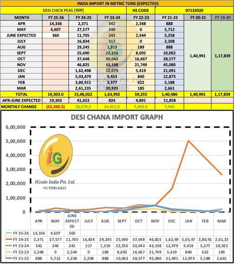 भारत – चना (देशी) आयात अनुमान: आयात में भारी गिरावट। कैसे रहेंगे बाजार