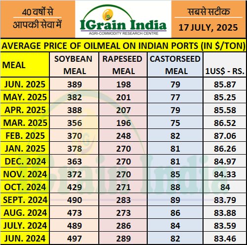 AVERAGE PRICE OF OILMEAL ON INDIAN PORTS