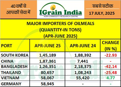 MAJOR IMPORTERS OF OILMEALS