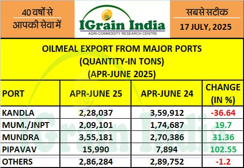 OILMEAL EXPORT FROM MAJOR PORTS