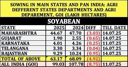 Sharp decline in soybean sowing: Maharashtra, Rajasthan, and Gujarat record major drops
