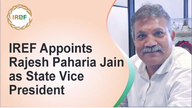 Rajesh Jain Pahadia Elected Vice President (State) of IREF