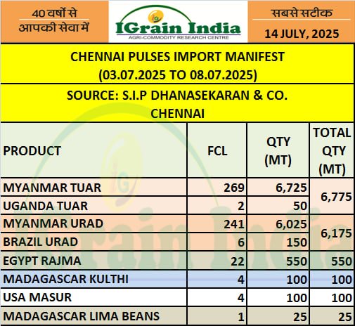 CHENNAI PULSES IMPORT MANIFEST