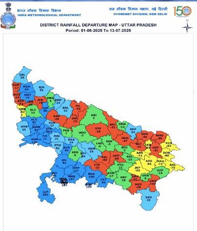 Rainfall status in Uttar Pradesh districts – June 1 to July 13, 2025: IMD report