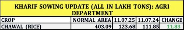 धान की बुवाई में बढ़ोतरी, अब तक 123.68 लाख हेक्टेयर में रोपाई – कृषि विभाग