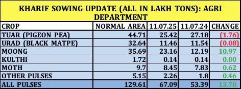 खरीफ दलहनों की बुवाई में 13.70 लाख हेक्टेयर की बढ़ोतरी – कृषि विभाग