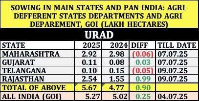 उड़द बिजाई विश्लेषण तारीख: 7 और 9 जुलाई 2025 तक के आंकड़े