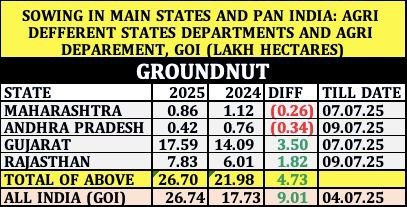 मूंगफली बिजाई विश्लेषण तारीख: 7 और 9 जुलाई 2025 तक के आंकड़े