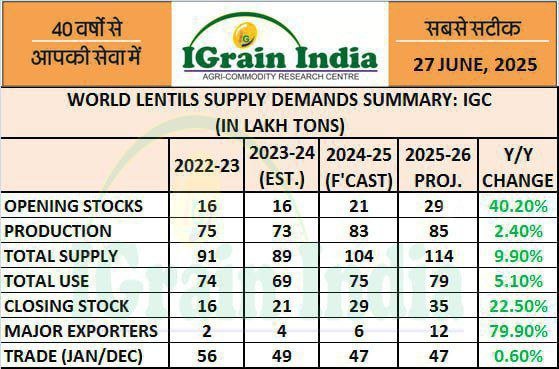 कनाडा में मसूर की बुवाई और स्टॉक्स में महत्वपूर्ण बदलाव: 2025 में बुवाई और भंडारण में बढ़ोतरी: स्टैटिस्टिक्स कनाडा