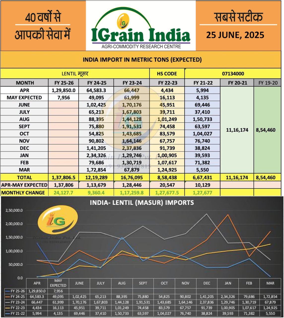 INDIA COUNTRY WISE IMPORTS LENTILS
