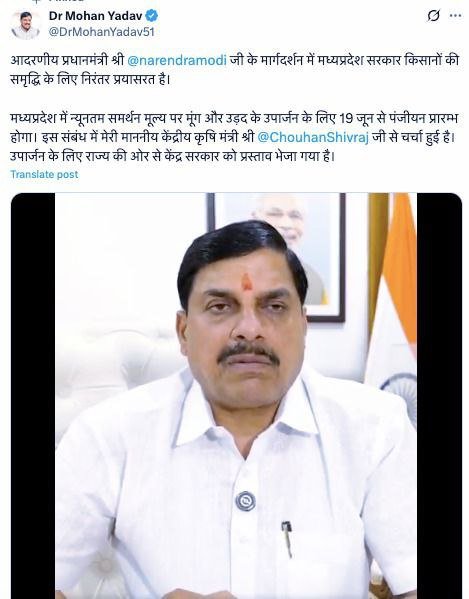 मध्य प्रदेश सरकार गुरुवार से खरीदेगी मूंग और उड़द, एमएसपी पर होगी खरीद: मुख्यमंत्री