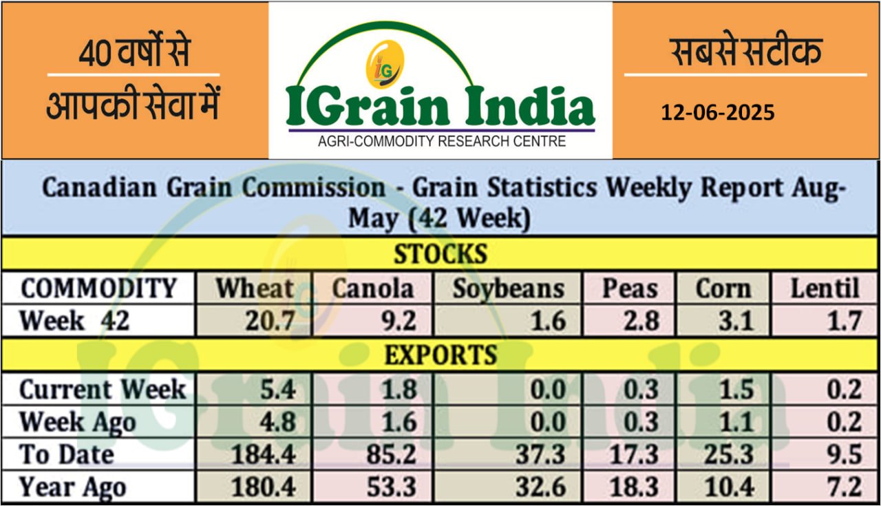 Canadian Grain Commission - Grain Statistics Weekly Report Aug- May (42 Week)