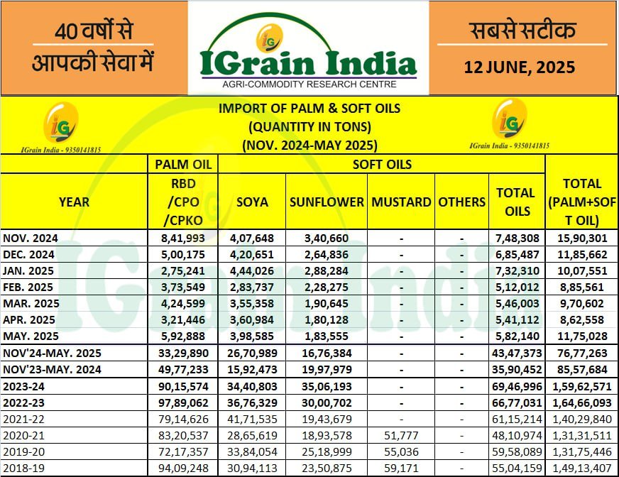 IMPORT OF PALM & SOFT OILS