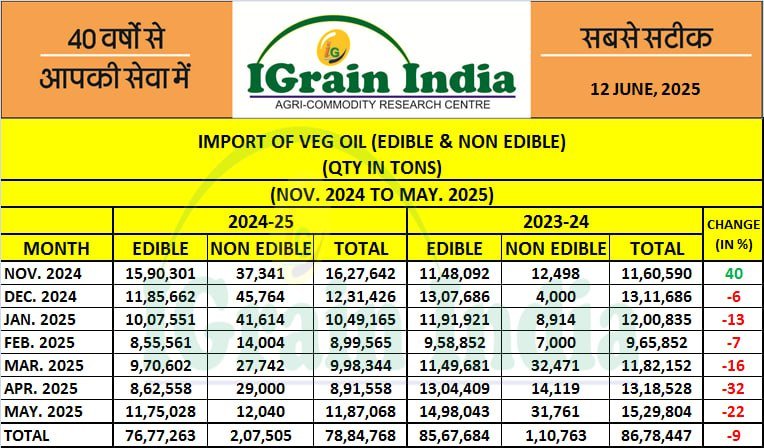 IMPORT OF VEG OIL (EDIBLE & NON EDIBLE)