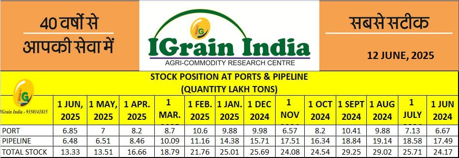 STOCK POSITION AT PORTS & PIPELINE