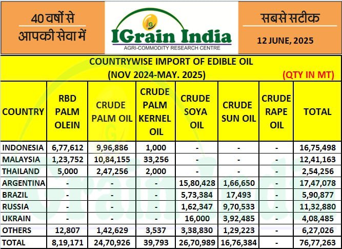 COUNTRYWISE IMPORT OF EDIBLE OIL