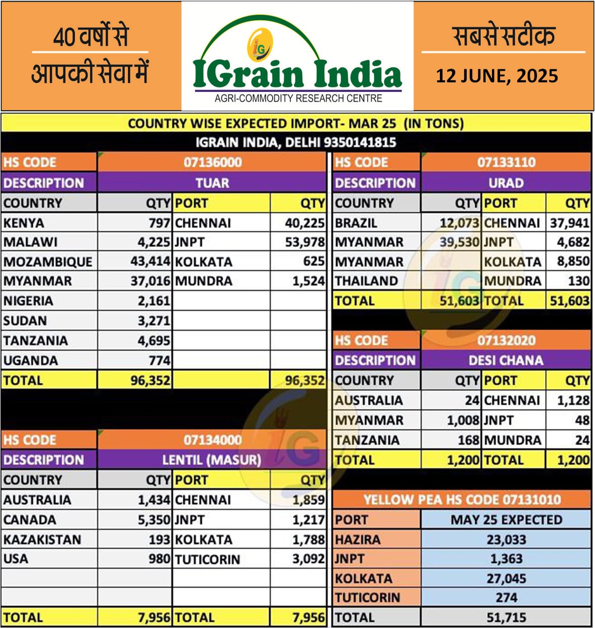 COMMODITY WISE PULSES IMPORT FIGURES