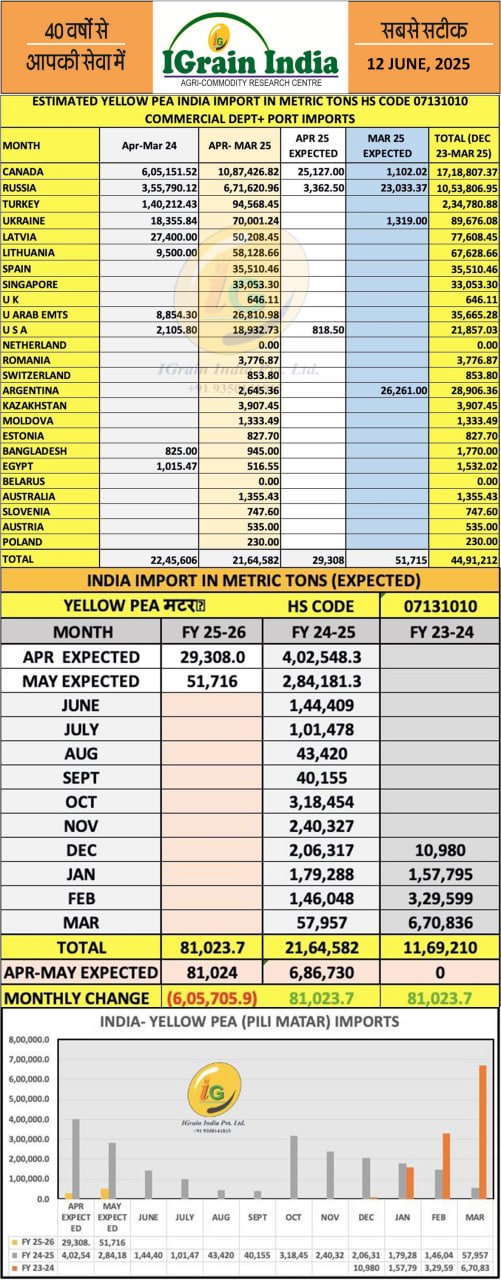 YELLOW PEAS IMPORT FIGURES AND CHART