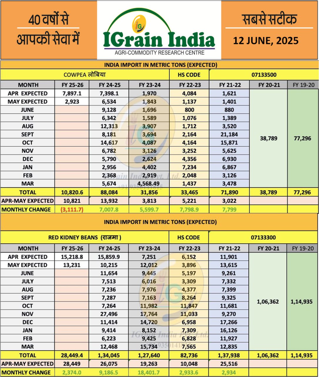 RAJMA LOBIA IMPORT FIGURES