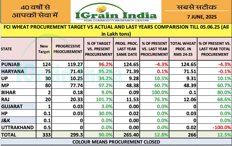FCI WHEAT PROCUREMENT TARGET VS ACTUAL AND LAST YEAR COMPARISION