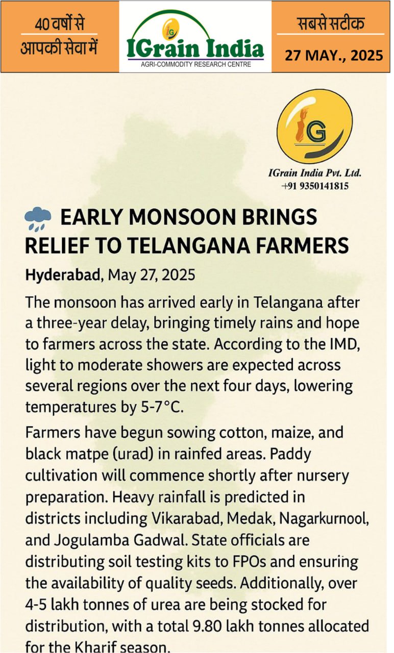 EARLY MONSOON BRINGS RELIEF TO TELANGANA FARMERS