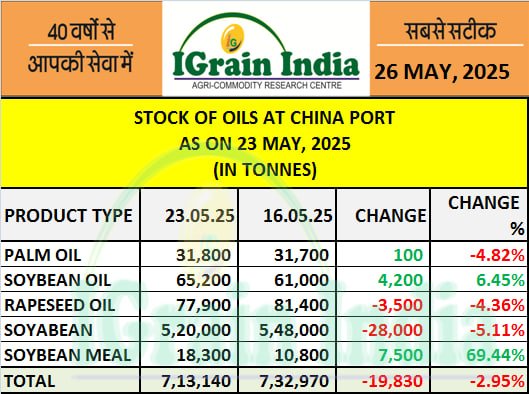 STOCK OF OILS AT CHINA PORT