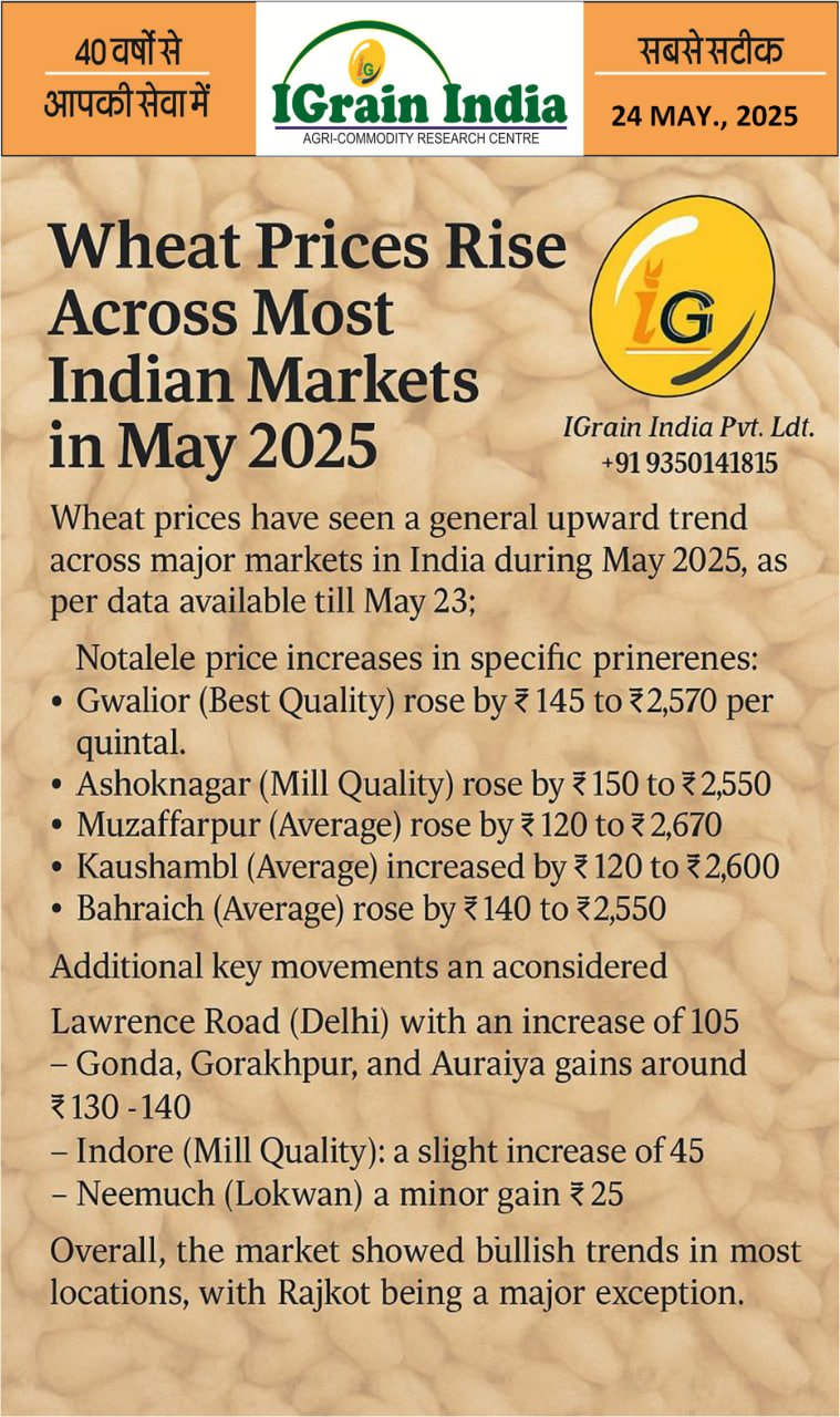 WHEAT PRICES PRICE ACROSS MOST INDIAN MARKETS IN MAY 2025