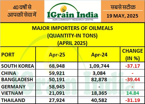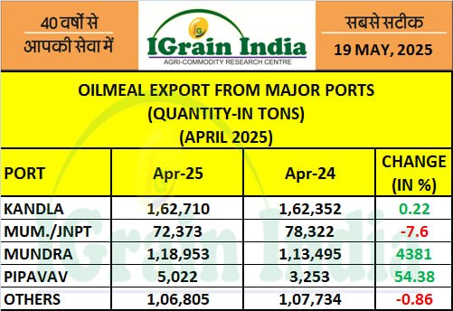 OILMEAL EXPORT FROM MAJOR PORTS APRIL