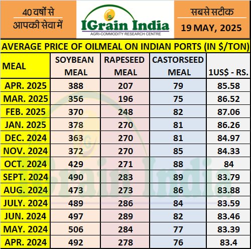 AVERAGE PRICE OF OILMEAL ON INDIAN PORTS APRIL