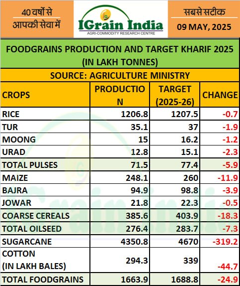 FOODGRAINS PRODUCTION AND TARGET KHARIF 2025