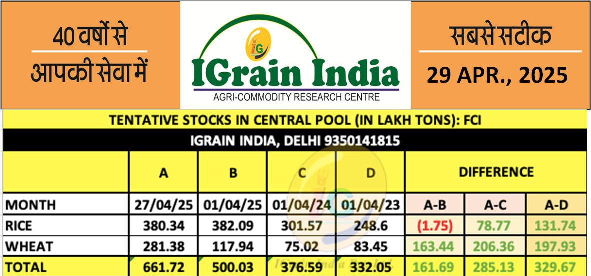 केंद्रीय भंडार में चावल और गेहूं का स्टॉक बढ़ा