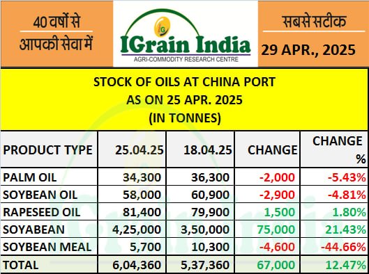 STOCK OF OILS AT CHINA PORT 25.04
