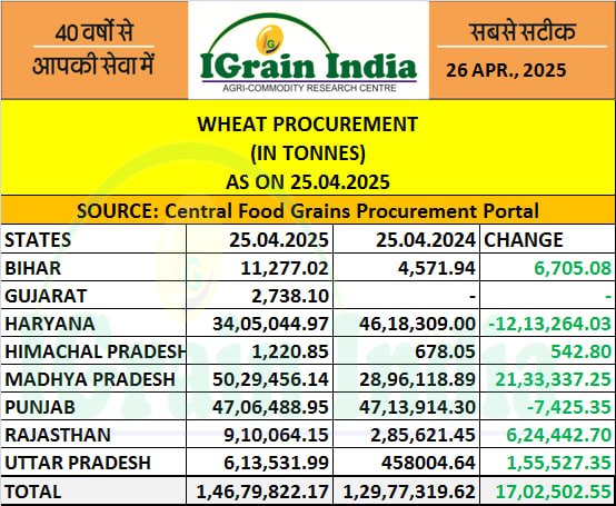 WHEAT PROCUREMENT FIGURES 25.04