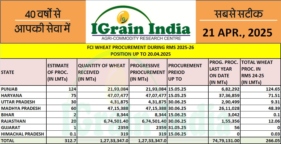 FCI WHEAT PROCUREMENT FIGURE AS ON 20.04.2025