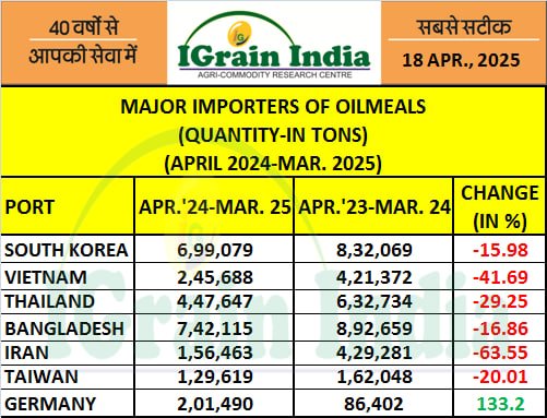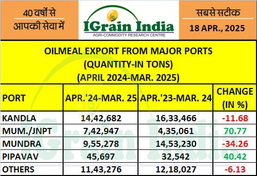OILMEAL EXPORT FROM MAJOR PORTS MARCH
