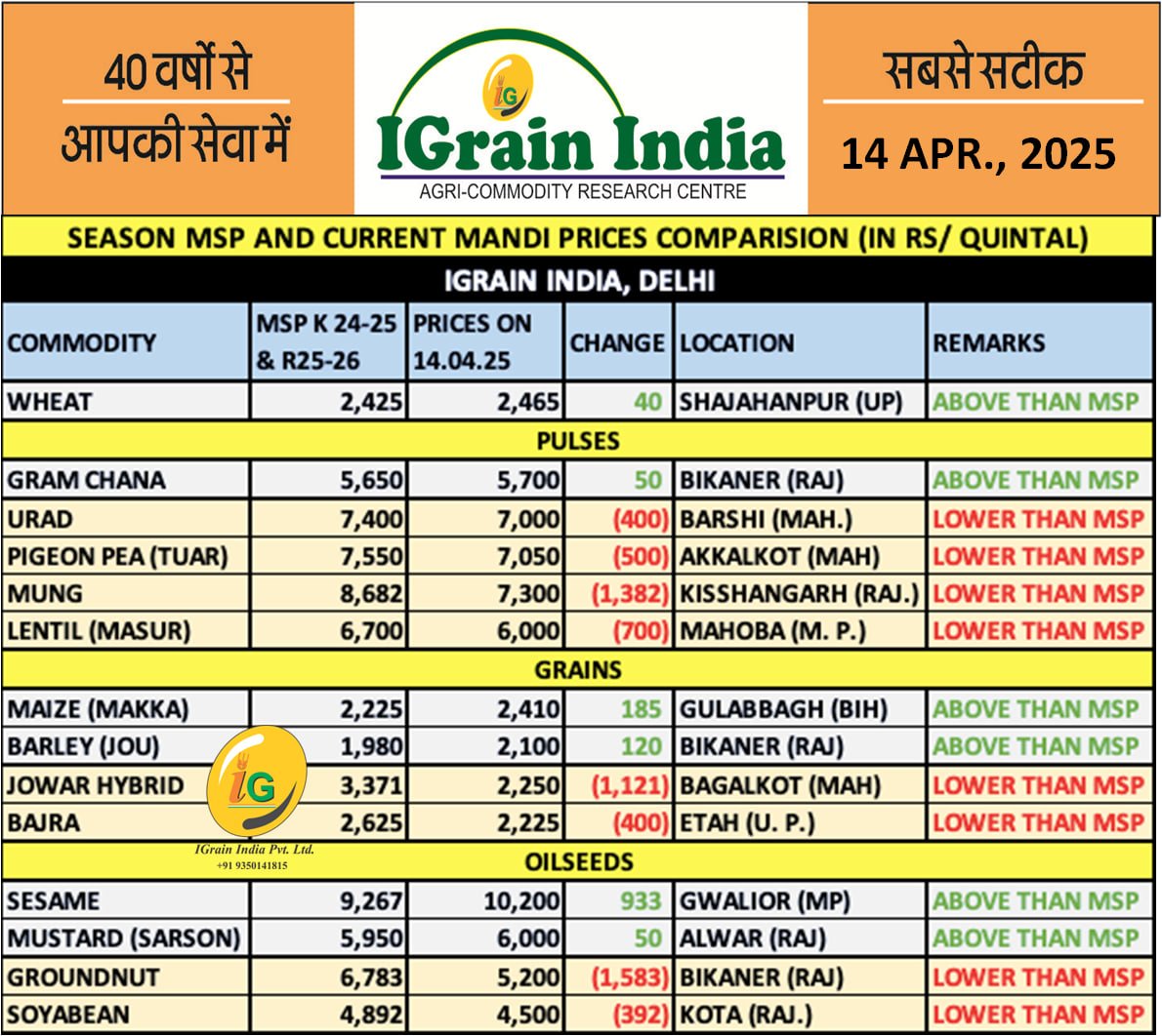 मंडी भाव में मिला-जुला रुख: गेहूं, मक्का और सरसों MSP से ऊपर, अन्य फसल पीछे