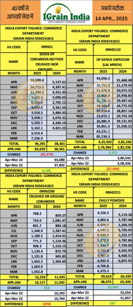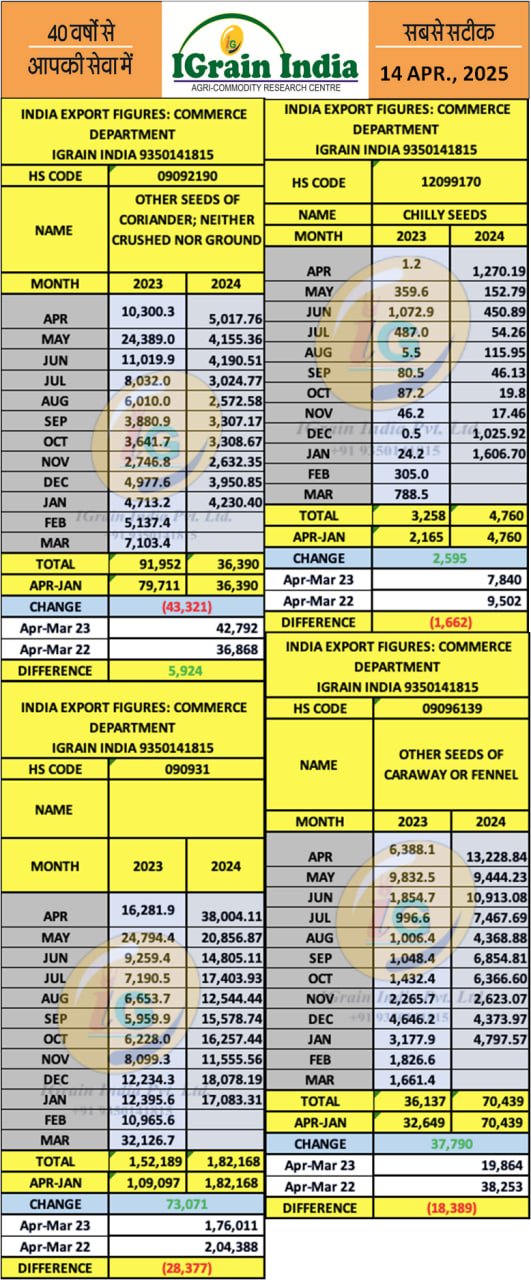 SPICES EXPORT FIGURES MARCH