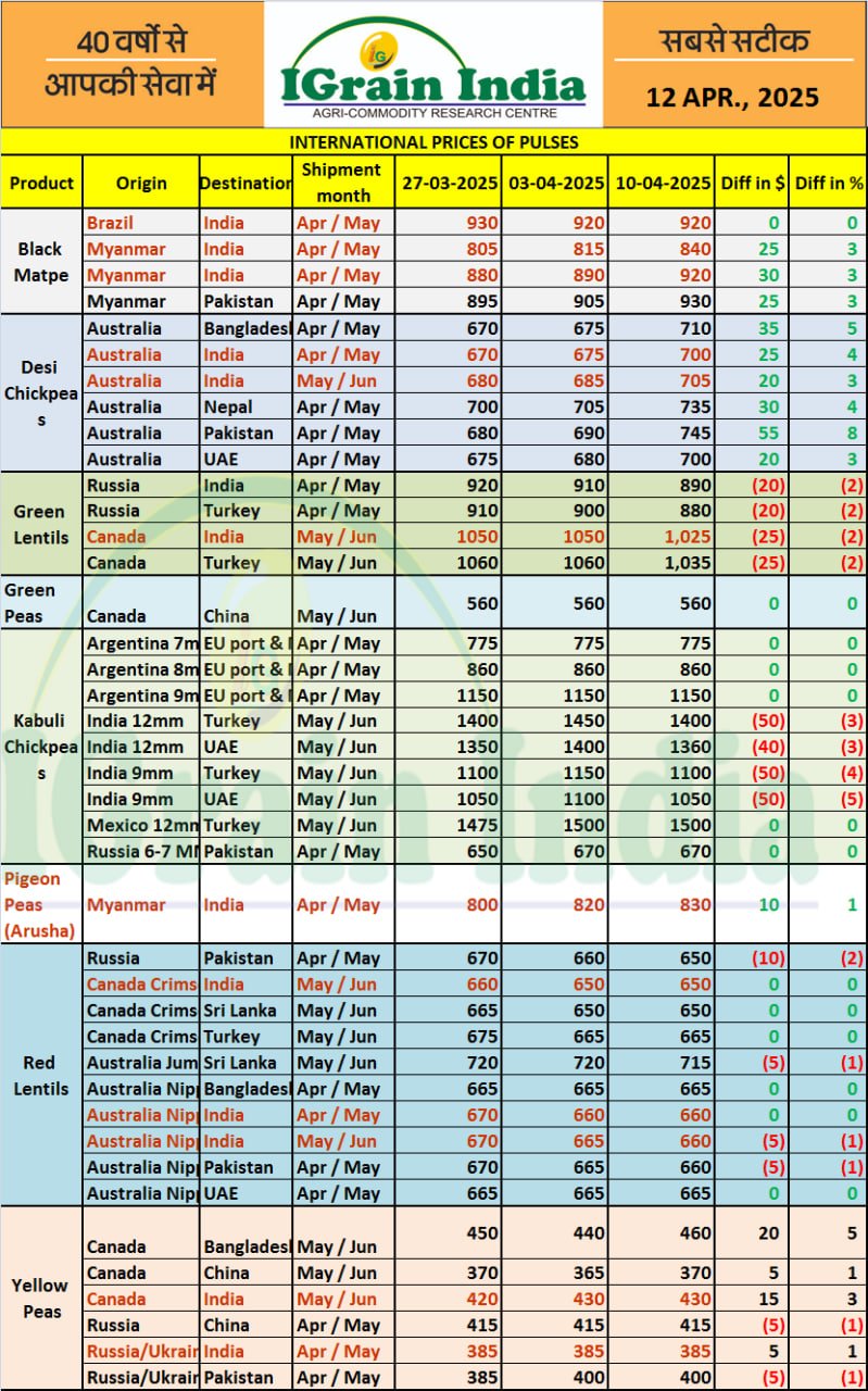 INTERNATIONAL PRICES OF PULSES 10 APR