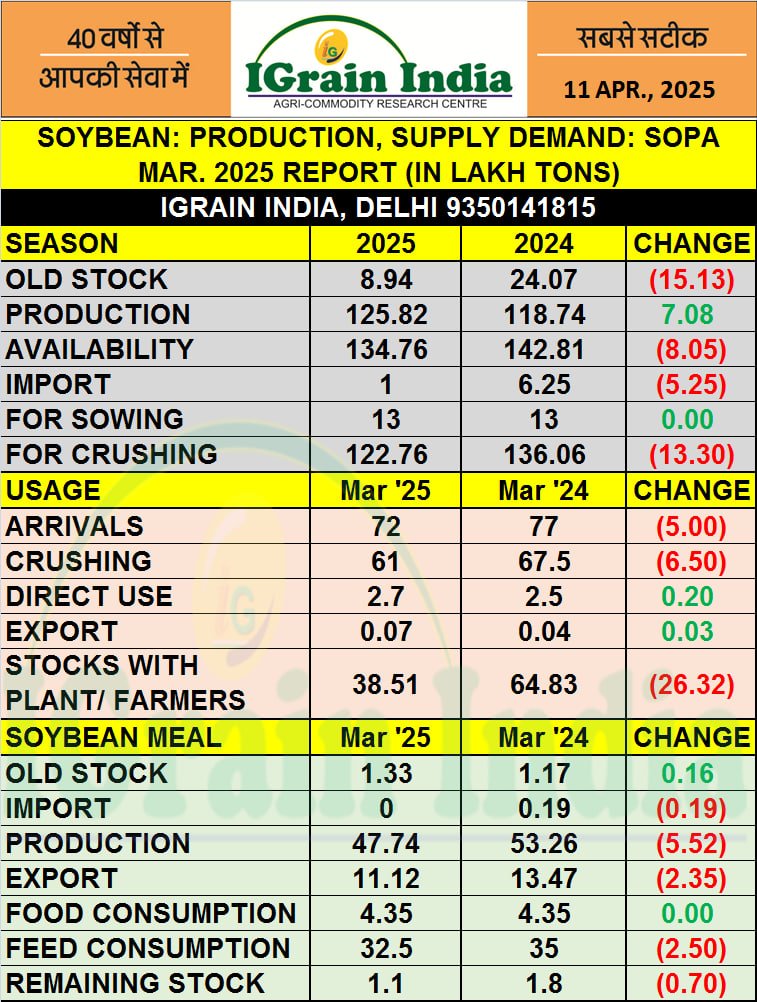 SOYBEAN PRODUCTION, SUPPLY DEMAND SOPA MARCH