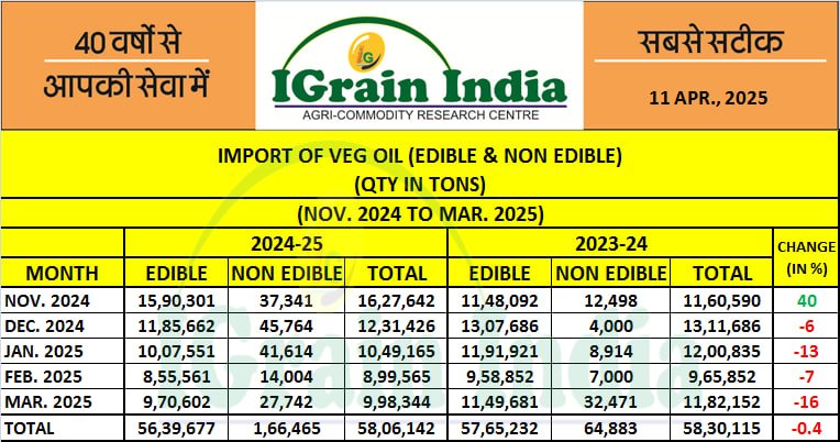 IMPORT OF VEG OIL (EDIBLE & NON EDIBLE) MAR
