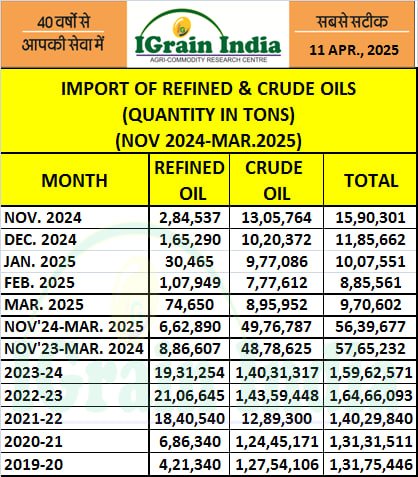 IMPORT OF REFINED & CRUDE OILS MARCH