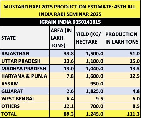 MUSTARD RABI 2025 PRODUCTION ESTIMATE: 45TH ALL INDIA RABI SEMINAR 2025