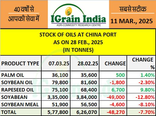 STOCK OF OILS AT CHINA PORT 07.03