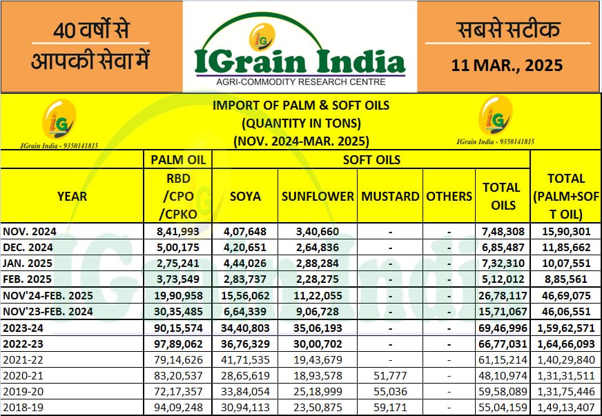 IMPORT OF PALM & SOFT OILS