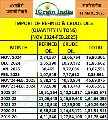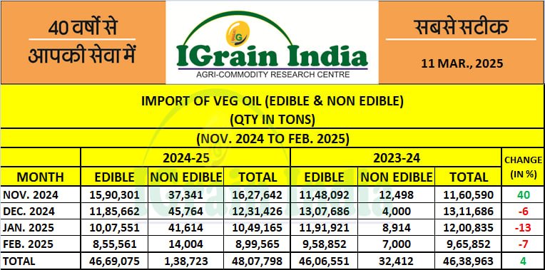 IMPORT OF VEG OIL (EDIBLE & NON EDIBLE)
