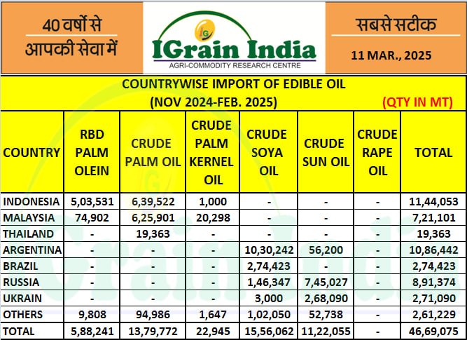 COUNTRYWISE IMPORT OF EDIBLE OIL