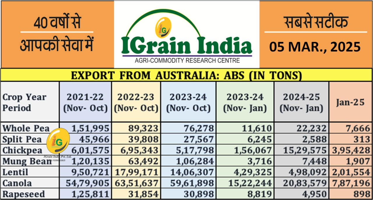 EXPORT FIGURES AUSTRALIA: ABS (IN MTS)