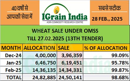 STATEWISE OMSS WHEAT SALE 13TH TENDER RESULT